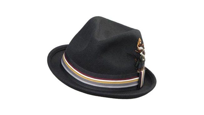 100%純羊毛的帽子,爵士帽的款式,用羽毛和亮眼的條紋裝飾顯得既時尚又隨性。