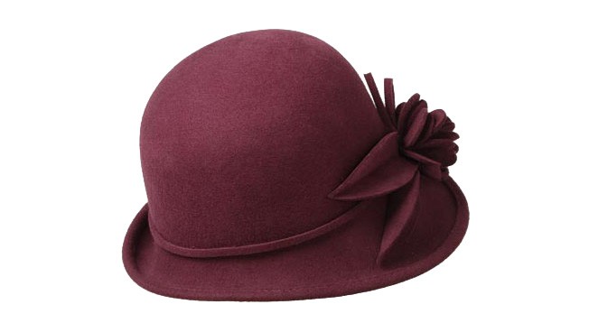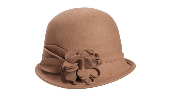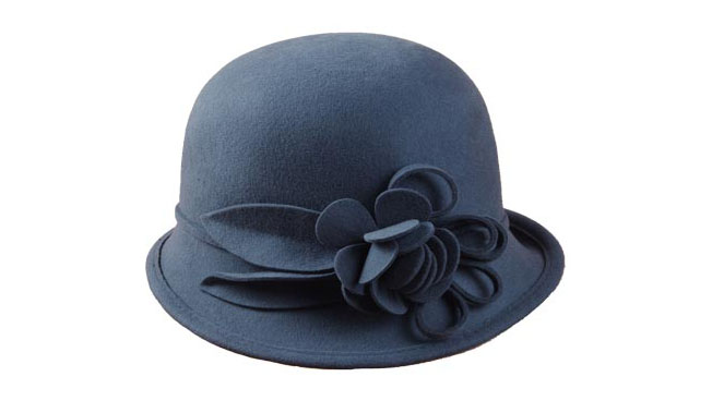 100%純羊毛的帽子,優雅大方的造型,盛開的花朵裝飾,厚實的包邊緊致而耐用。